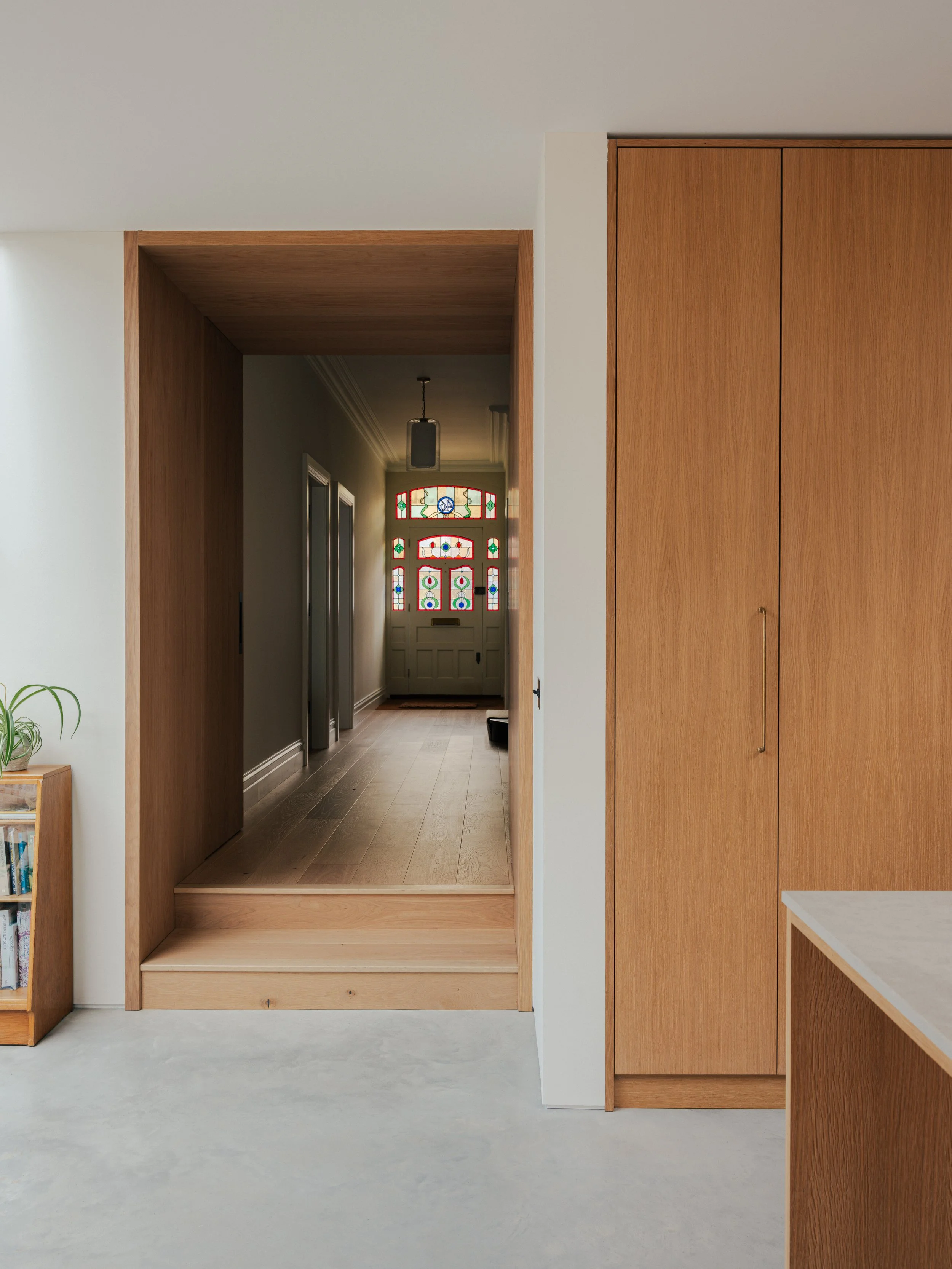 In reconfiguring the rear of the house, we retained the natural light and openness the clients valued, whilst removing the original solid outrigger walls to allow for a more unified and functional layout. Due to the generous width of the property, we avoided a monolithic rear façade by breaking the new volume into distinct material expressions.